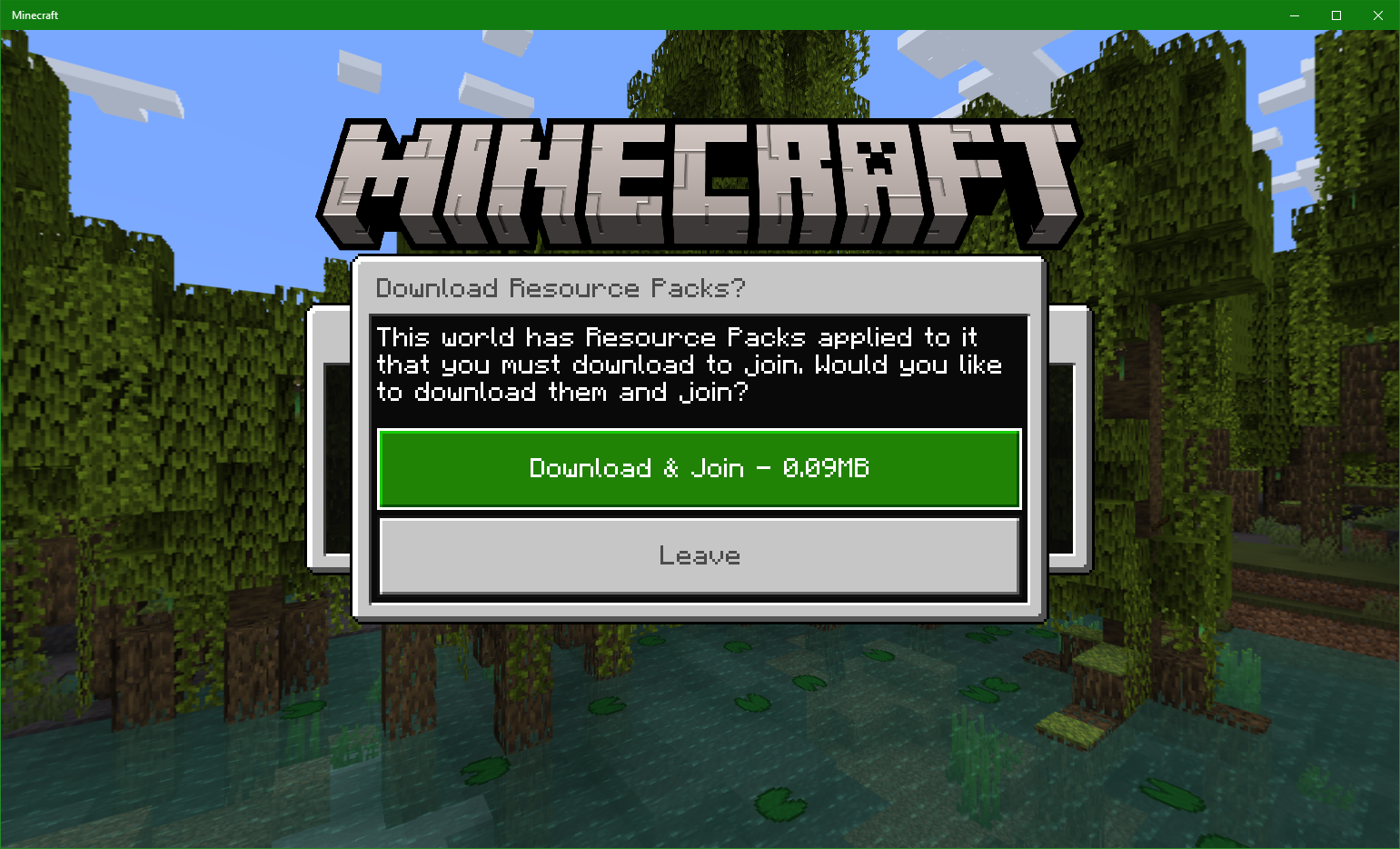 If you are prompted to Download Resource Packs?, select the Download & Join button.